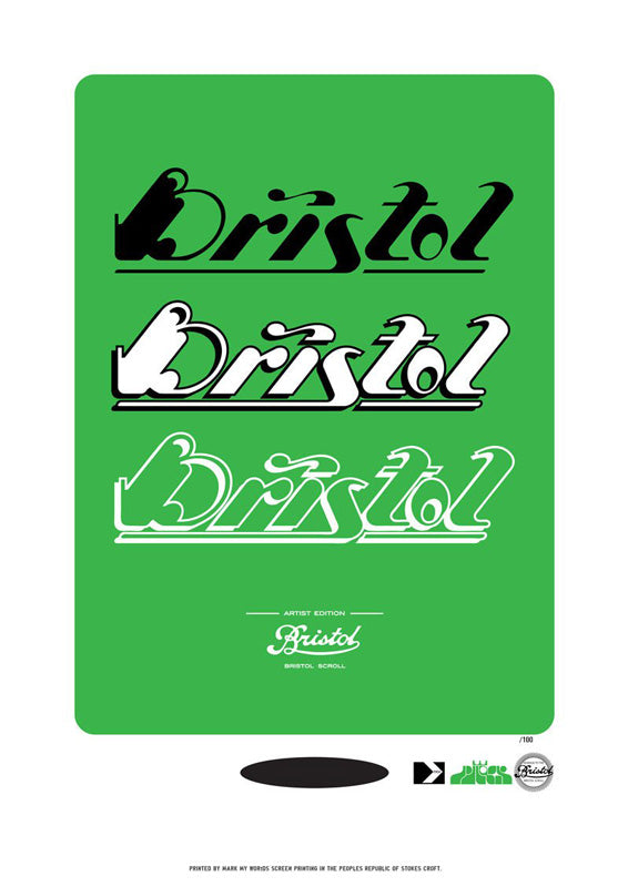 This A2 green and white print is a homage to the Bristol Scroll by Paris, one of six Bristol graffiti artists to reinterpret the scroll in their own style for PRSC here in Stokes Croft. These screen prints are part of...