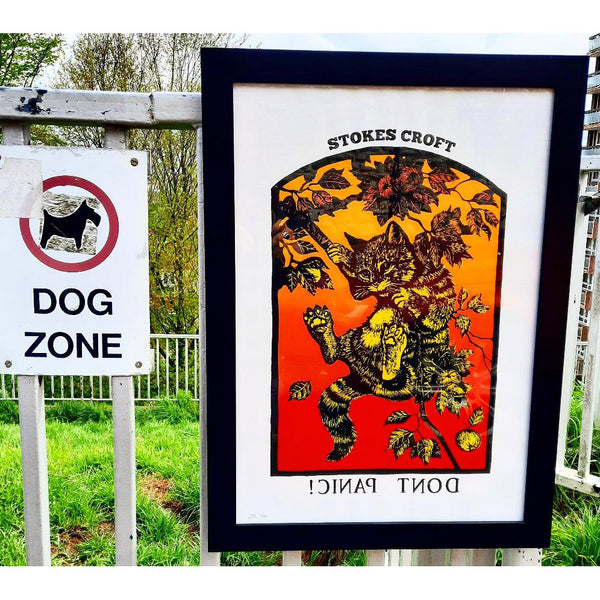 The image for this print comes from a studio used by graffiti artists in Mivart St, Easton in 2009. The screen itself was found languishing there and we liked it so much we printed more. We would love more information...